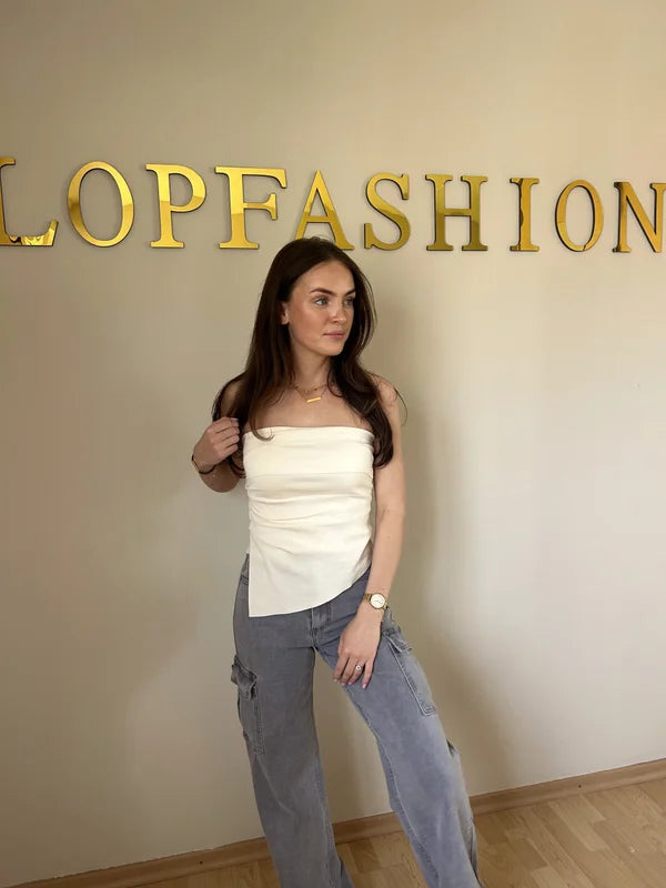 Deze bandeau top is een must-have voor je zomer garderobe! Er zit veel stretch in de top en draagt dus zeer comfortabel. Of je hem nu draagt op onze stoere cargobroek of op een pantalon, deze top is veelzijdig en gemakkelijk te combineren met allerlei outfits.